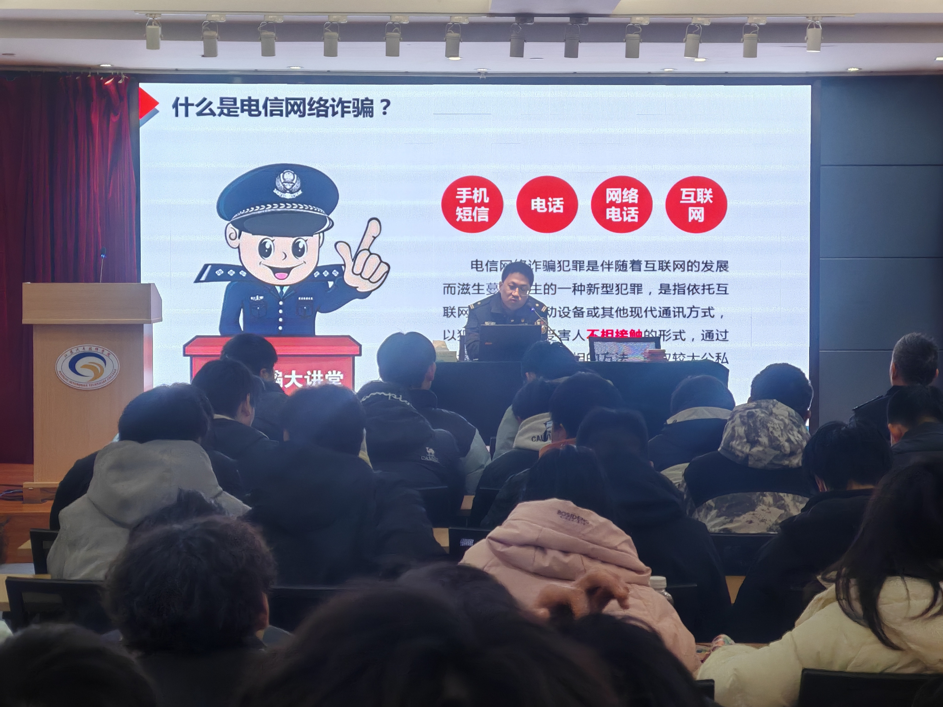 最后,广陵公安分局陈警官、佘警官聚焦学生群体常遇的风险领域,重点讲解了电信网络诈骗的常见手法与防范策略,强调了交通安全规则与校园安全注意事项。他们通过真实案例警示与实用技能传授,增强了师生的安全防护意识与应急处理能力。