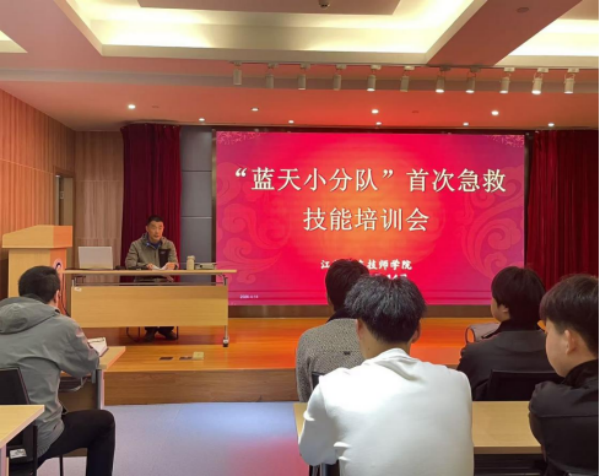为进一步筑牢学生自治应急保障体系,充分发挥学生骨干的带头作用,学院从各班级班委中择优选拔,组建了一支由学生组成的急救先锋力量——“蓝天小分队”。15号下午,小分队在学院三楼报告厅迎来了首次集中培训。学工处、后勤处负责人、医务人员及60余名队员参加培训。